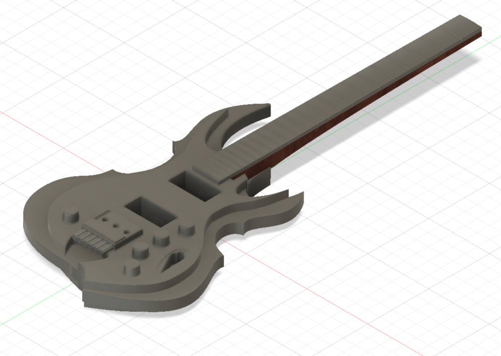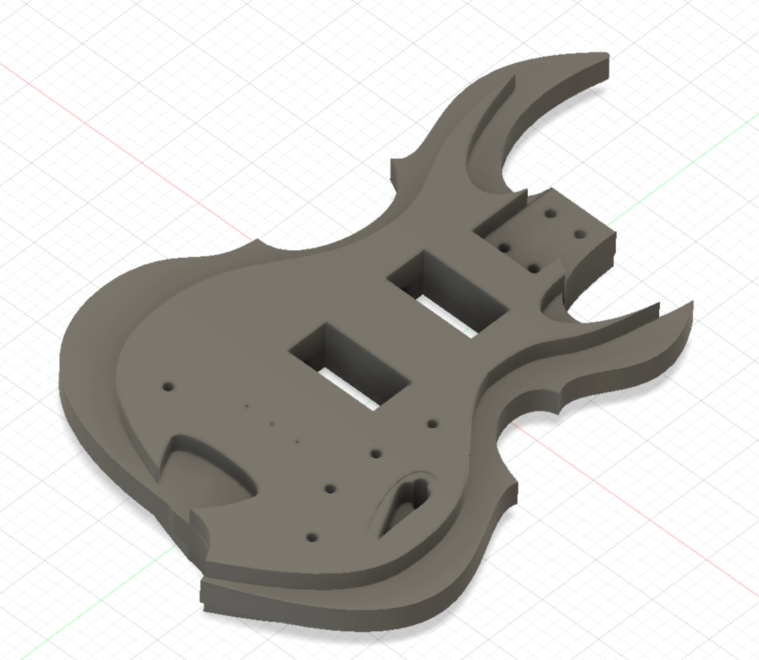 So, my second attempt was to try to turn a shape more like a squid into a guitar. Cephalopods are my wife’s favorite creatures, so back to Etsy I went to get a svg or two of squid and octopus designs. After a week of working on the design and disliking where it headed each time, I gave up on the animal based design idea altogether. I disliked the designs so much I don’t even have a copy left on my computer!