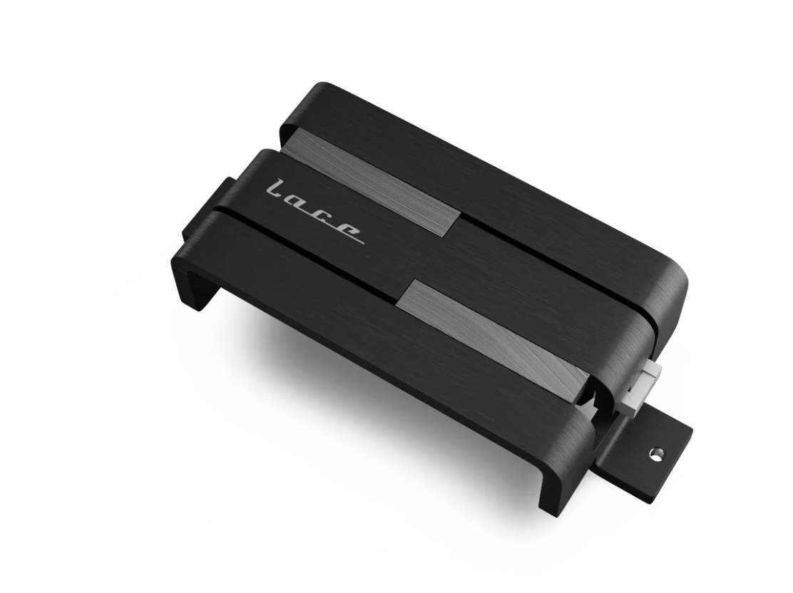 Another quick note about pickups. In most guitars, the pickups are connected to the pickguard and pulled toward it by the mounting screws, not screwed into the body of the guitar and held away from the wood. Unfortunately for me, I believed the second to be the case, and had based my design on being able to screw the pickups to the wood from behind. Once I realized my mistake I tried to quickly pivot and fix the problem and add plates around the pickups, thinking this was the only way to correct it. If I’d have thought a little bit longer I could have realized that I still might have been able to mount the pickups through the wood by thinning out the body in that area and mounted the pickup through the body just like a pickguard. Hindsight, right? Anyway, I designed and laser-cut these plates in black acrylic.