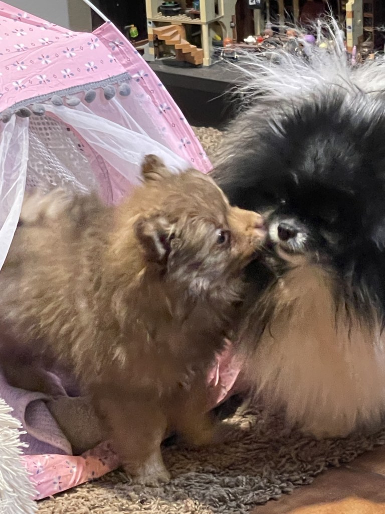 And he wont stop attacking Whisper. Whisper is my support dog and has gotten me through several suicidal times. He is the smallest and lightest of all the pomeranians we’ve adopted, weiging in at 6.5 lbs.Remi will tackle him and drag him around playing and seconds after breaking them up Remi will be right back to attacking Whisper. And Whisper is too gentle to fight back. So when Remi is awake, I have to spend my attention on making sure he’s not being a jerk again.