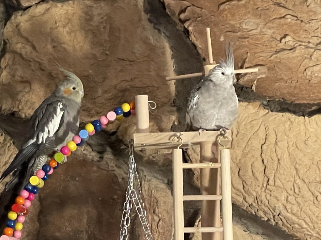 Since then we’ve also adopted a cockatiel with more traditional coloring that we named Hazel. She’s a little bit more social and is actually getting Ash to come out of her shell a bit.