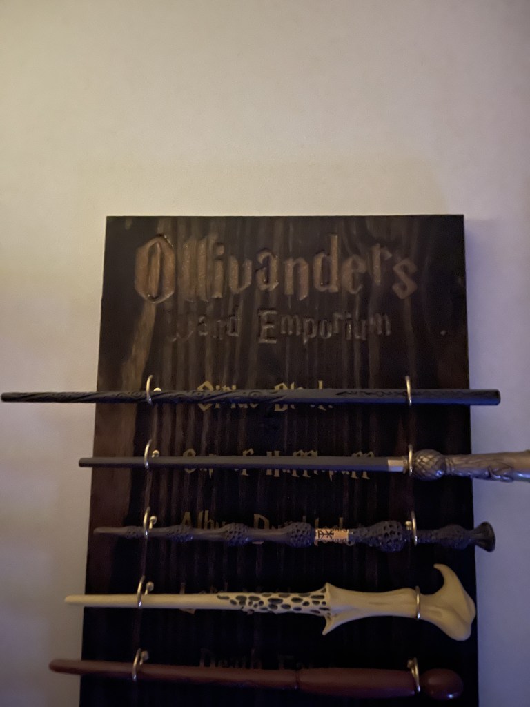 Harry potter is pretty popular with my wife and her family, so of course everone has a wand or seven. My wife thought it would be nice to build a little holder to hang her wands on the wall and label them with which belongs to which character.